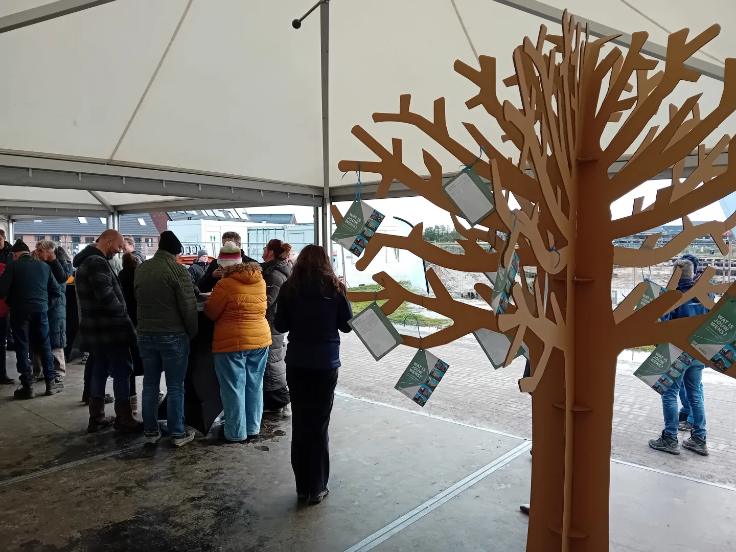 Gisteren ging voor de toekomstige bewoners het avontuur écht van start: hun woonwensen kregen vorm. Onder het genot van koffie en een vers gebakje werden de ideeën opgeschreven, gedeeld en opgehangen – een mooi en persoonlijk begin.