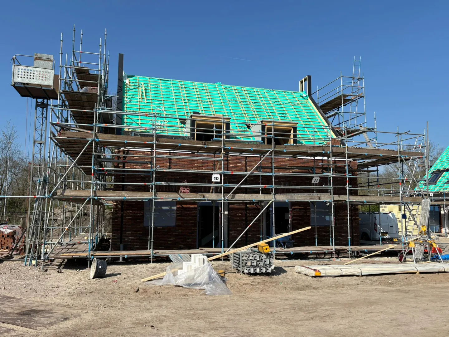 Nieuwbouwplan Westerslag groeit. De daken en dakkapellen zijn geplaatst, waardoor de woningen hun herkenbare vorm krijgen. Tegelijkertijd wordt er volop gemetseld.